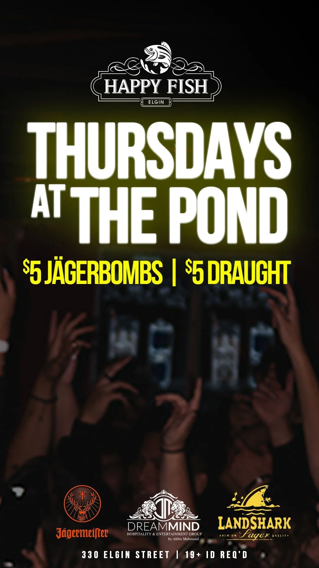 FEATURES WEEKLY FEATURESTHURSDAY$5.50 Jägerbombs + $5 Draught every Thursday Did we mention that it’s FREE cover too..?! EVENTS Dec 31 to Jan 1 NYE 2024 Sun, Dec 31, 2023 10:00 p.m. Mon, Jan 1, 2024 2:00 a.m. Happy Fish Elgin (map) Google Calendar ICS View Event →